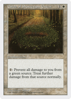 {1}: The next time a green source of your choice would deal damage to you this turn, prevent that damage.