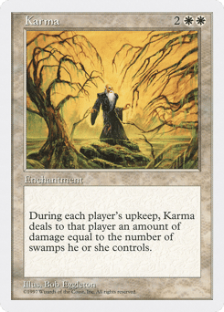 At the beginning of each player's upkeep, this enchantment deals damage to that player equal to the number of Swamps they control.
