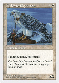 Flying; first strike; banding (Any creatures with banding, and up to one without, can attack in a band. Bands are blocked as a group. If any creatures with banding you control are blocking or being blocked by a creature, you divide that creature's combat damage, not its controller, among any of the creatures it's being blocked by or is blocking.)