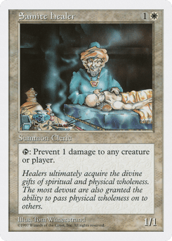 {T}: Prevent the next 1 damage that would be dealt to any target this turn. {1}{W}{W}, {T}: Target creature gains vigilance until end of turn.