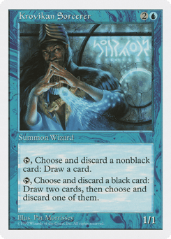 {T}, Discard a nonblack card: Draw a card. {T}, Discard a black card: Draw two cards, then discard one of them.