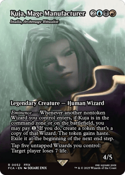 Eminence — Whenever another nontoken Wizard you control enters, if Inalla is in the command zone or on the battlefield, you may pay {1}. If you do, create a token that's a copy of that Wizard. The token gains haste. Exile it at the beginning of the next end step. Tap five untapped Wizards you control: Target player loses 7 life.