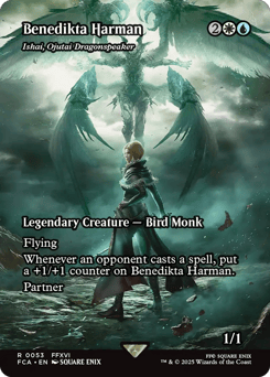 Flying Whenever an opponent casts a spell, put a +1/+1 counter on Ishai. Partner (You can have two commanders if both have partner.)