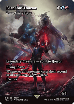 Flying, haste Whenever an opponent casts their second spell each turn, draw a card. Partner (You can have two commanders if both have partner.)