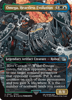 Wave Cannon — When Omega enters, for each opponent, tap up to one target nonland permanent that opponent controls. Put X stun counters on each of those permanents and you gain X life, where X is the number of nonbasic lands you control. (If a permanent with a stun counter would become untapped, remove one from it instead.)