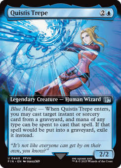 Reveal the top five cards of your library. Put one of them into your hand. Then choose an opponent. They put one on the bottom of your library. Then you put one into your hand. Then they put one on the bottom of your library. Put the other into your hand. Flashback {7}{U}{U}