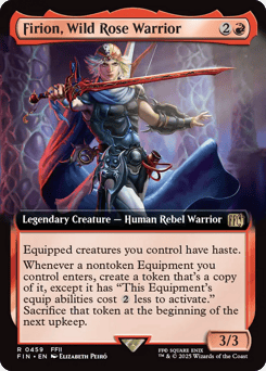 Equipped creatures you control have haste. Whenever a nontoken Equipment you control enters, create a token that's a copy of it, except it has "This Equipment's equip abilities cost {2} less to activate." Sacrifice that token at the beginning of the next upkeep.