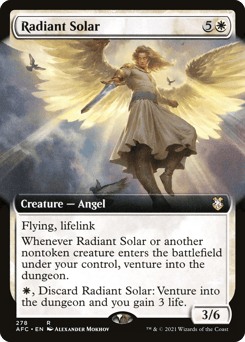 Flying, lifelink Whenever this creature or another nontoken creature you control enters, venture into the dungeon. (Enter the first room or advance to the next room.) {W}, Discard this card: Venture into the dungeon and you gain 3 life.