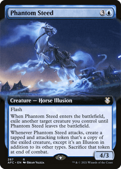 Flash When this creature enters, exile another target creature you control until this creature leaves the battlefield. Whenever this creature attacks, create a tapped and attacking token that's a copy of the exiled card, except it's an Illusion in addition to its other types. Sacrifice that token at end of combat.