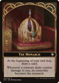 At the beginning of your end step, draw a card. Whenever a creature deals combat damage to you, its controller becomes the monarch.