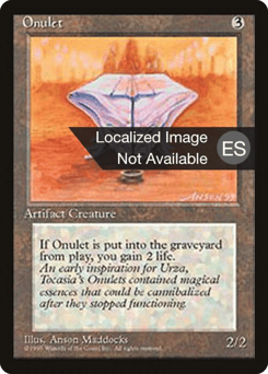 Enchant artifact Whenever you're dealt damage, put that many vitality counters on this Aura. At the beginning of your upkeep, you may remove a vitality counter from this Aura. If you do, you gain 1 life.