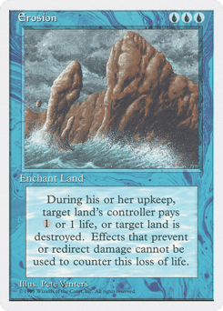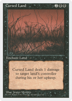 Enchant land At the beginning of the upkeep of enchanted land's controller, destroy that land unless that player pays {1} or 1 life.