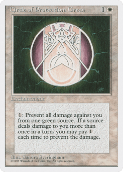 {1}: The next time a green source of your choice would deal damage to you this turn, prevent that damage.
