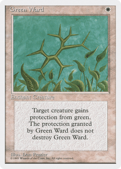 Enchant creature Enchanted creature has protection from green. This effect doesn't remove this Aura.
