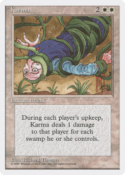 At the beginning of each player's upkeep, this enchantment deals damage to that player equal to the number of Swamps they control.