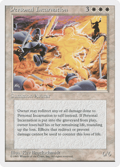{0}: The next 1 damage that would be dealt to this creature this turn is dealt to its owner instead. Only this creature's owner may activate this ability. When this creature dies, its owner loses half their life, rounded up.