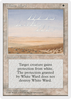 Enchant creature Enchanted creature has protection from white. This effect doesn't remove this Aura.