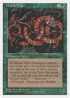 Whenever this creature deals damage to a player, that player gets two poison counters. (A player with ten or more poison counters loses the game.)