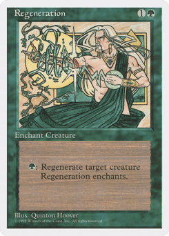 Enchant creature (Target a creature as you cast this. This card enters attached to that creature.) {G}: Regenerate enchanted creature. (The next time that creature would be destroyed this turn, instead tap it, remove it from combat, and heal all damage on it.)