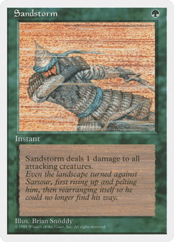Sandstorm deals 1 damage to each attacking creature.