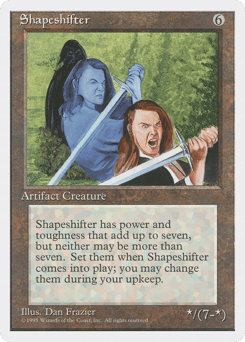 As this creature enters, choose a number between 0 and 7. At the beginning of your upkeep, you may choose a number between 0 and 7. Shapeshifter's power is equal to the last chosen number and its toughness is equal to 7 minus that number.