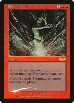 You may sacrifice two Mountains rather than pay this spell's mana cost. Fireblast deals 4 damage to any target.