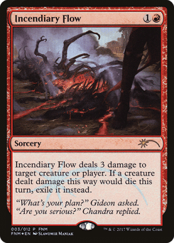 Incendiary Flow deals 3 damage to any target. If a creature dealt damage this way would die this turn, exile it instead.