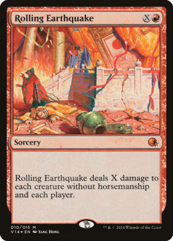 Rolling Earthquake deals X damage to each creature without horsemanship and each player.