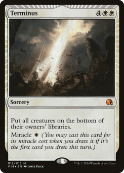 Put all creatures on the bottom of their owners' libraries. Miracle {W} (You may cast this card for its miracle cost when you draw it if it's the first card you drew this turn.)