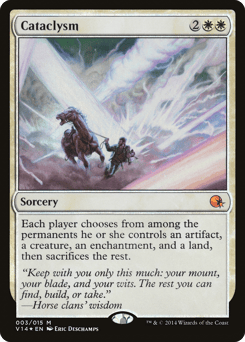 Each player chooses from among the permanents they control an artifact, a creature, an enchantment, and a land, then sacrifices the rest.