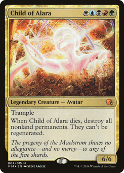 Trample When Child of Alara dies, destroy all nonland permanents. They can't be regenerated.