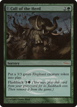 Create a 3/3 green Elephant creature token. Flashback {3}{G} (You may cast this card from your graveyard for its flashback cost. Then exile it.)