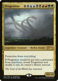 Protection from everything If Progenitus would be put into a graveyard from anywhere, reveal Progenitus and shuffle it into its owner's library instead.