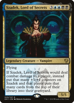 Flying If Szadek would deal combat damage to a player, instead put that many +1/+1 counters on Szadek and that player mills that many cards.