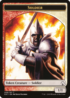 {1}{R}{W}: Creatures you control get +1/+0 until end of turn. {2}{R}{W}: Create a 1/1 red and white Soldier creature token with haste.