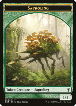 {1}{B}{G}: Target creature gets +1/+1 and gains intimidate until end of turn. (It can't be blocked except by artifact creatures and/or creatures that share a color with it.) {2}{B}{G}, Sacrifice a nontoken creature: Create X 1/1 green Saproling creature tokens, where X is the sacrificed creature's toughness.