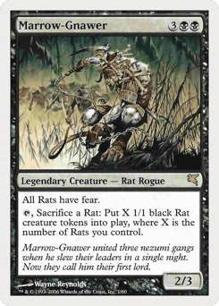 All Rats have fear. {T}, Sacrifice a Rat: Create X 1/1 black Rat creature tokens, where X is the number of Rats you control.