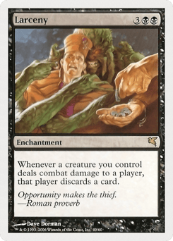Whenever a creature you control deals combat damage to a player, that player discards a card.
