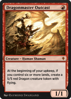 At the beginning of your upkeep, if you control six or more lands, create a 5/5 red Dragon creature token with flying.