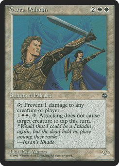 {T}: Prevent the next 1 damage that would be dealt to any target this turn. {1}{W}{W}, {T}: Target creature gains vigilance until end of turn.