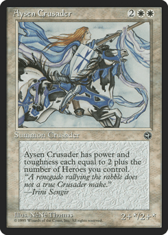 Aysen Crusader's power and toughness are each equal to 2 plus the number of Soldiers and Warriors you control.