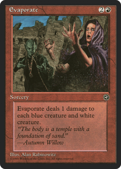 Evaporate deals 1 damage to each white and/or blue creature.
