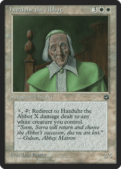 {X}, {T}: The next X damage that would be dealt this turn to target white creature you control is dealt to Hazduhr instead.