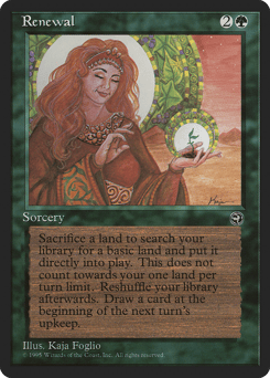 As an additional cost to cast this spell, sacrifice a land. Search your library for a basic land card, put that card onto the battlefield, then shuffle. Draw a card at the beginning of the next turn's upkeep.