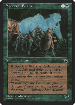 Whenever Spectral Bears attacks, if defending player controls no black nontoken permanents, it doesn't untap during your next untap step.