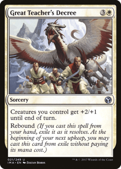 Creatures you control get +2/+1 until end of turn. Rebound (If you cast this spell from your hand, exile it as it resolves. At the beginning of your next upkeep, you may cast this card from exile without paying its mana cost.)