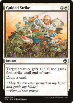 Target creature gets +1/+0 and gains first strike until end of turn. Draw a card.