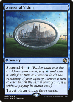 Suspend 4—{U} (Rather than cast this card from your hand, pay {U} and exile it with four time counters on it. At the beginning of your upkeep, remove a time counter. When the last is removed, you may cast it without paying its mana cost.) Target player draws three cards.