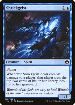 Flying Whenever this creature deals combat damage to a player, that player mills two cards.