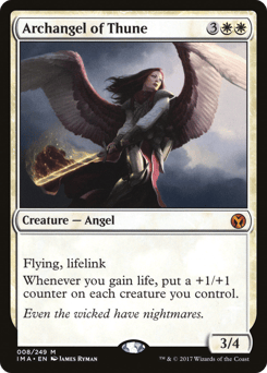 Flying Lifelink (Damage dealt by this creature also causes you to gain that much life.) Whenever you gain life, put a +1/+1 counter on each creature you control.
